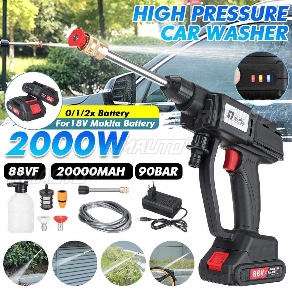 20000mAh Cordless High Pressure Washer Spray Water Gun Car Wash Pressure Water Nozzle Cleaning Machine for 18V Battery