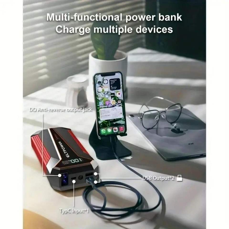 20000mAh USB คู่ชาร์จเร็วแบตเตอรี่รถยนต์พร้อมไฟ LED สีแดง