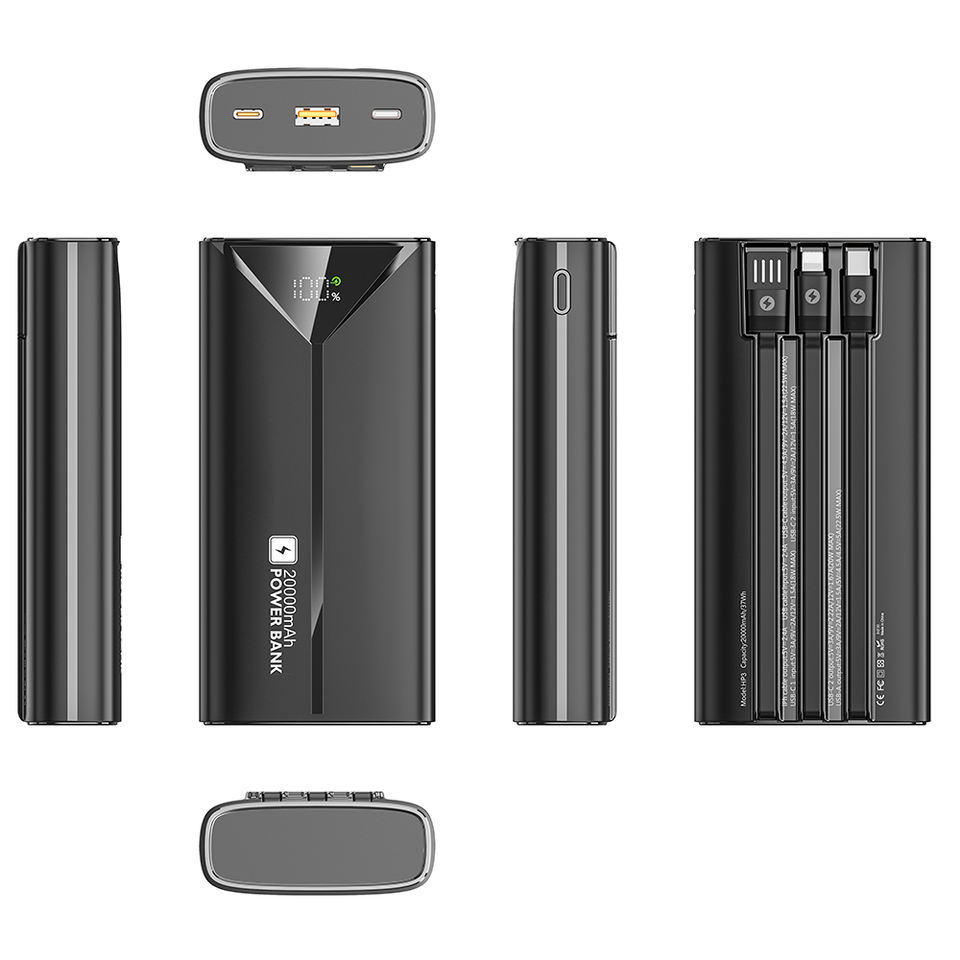 พาวเวอร์แบงค์ 20000mAh พร้อมสายในตัว 3 เส้น, ชาร์จเร็ว 22.5W และหน้าจอ LED - เครื่องชาร์จพกพา 6 พอร์ตสำหรับโทรศัพท์และหูฟัง