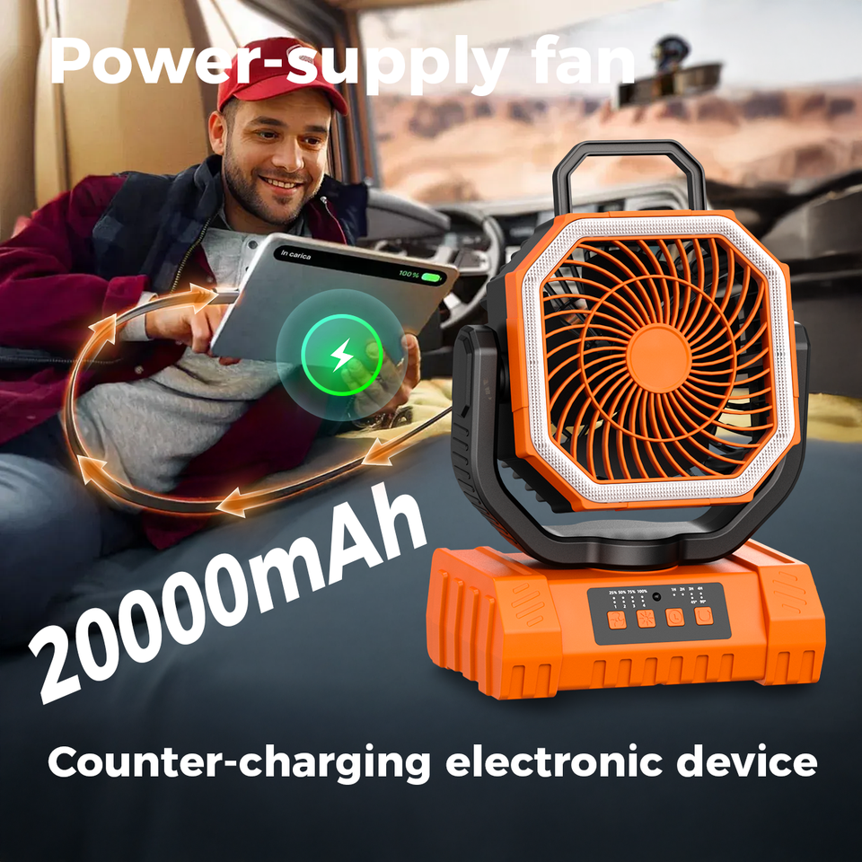 พาวเวอร์แบงค์ 20000mAh พัดลม USB รุ่น F6S พัดลมพกพาแบบชาร์จไฟได้ พร้อมไฟ LED สำหรับตั้งแคมป์ พัดลมตั้งโต๊ะสำหรับกิจกรรมกลางแจ้ง