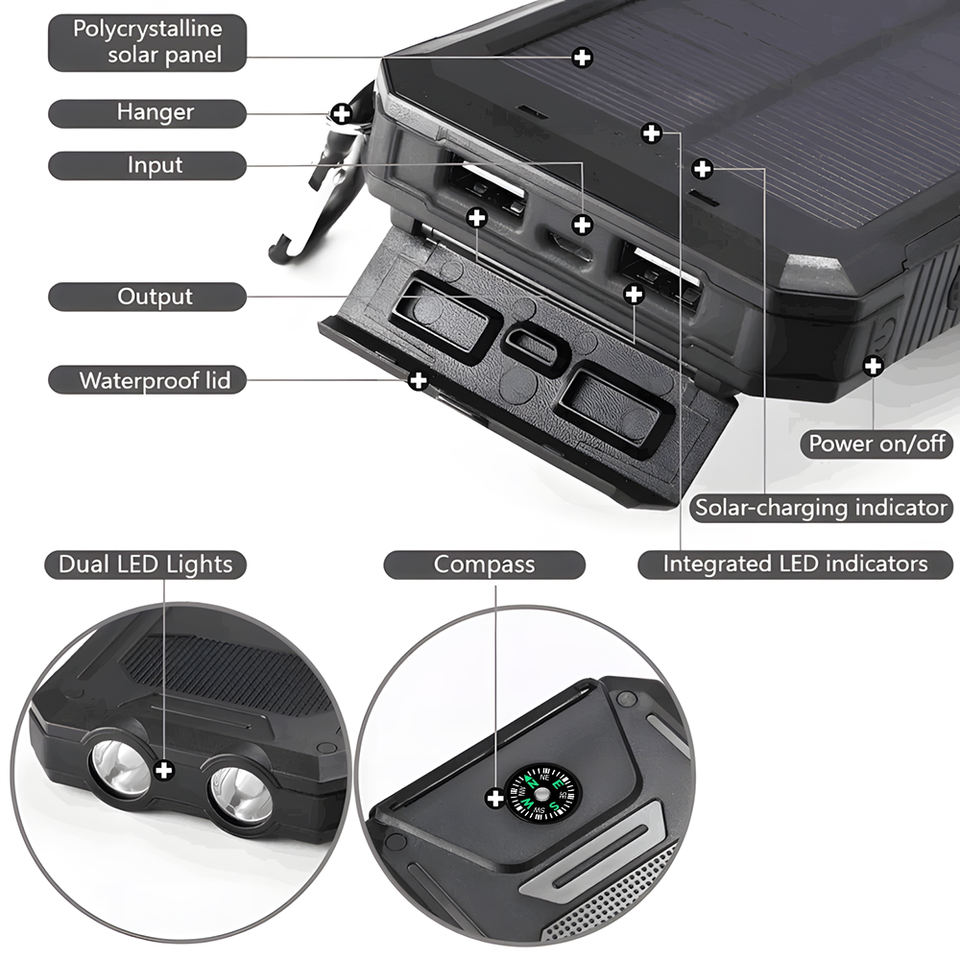ธนาคารพลังงานแสงอาทิตย์20000มิลลิแอมป์ต่อชั่วโมงทางเลือกทางเศรษฐกิจพอร์ต USB คู่แบตเตอรี่โพลิเมอร์ชนิด C กันน้ำสำหรับการใช้งานประจำวันและกลางแจ้ง