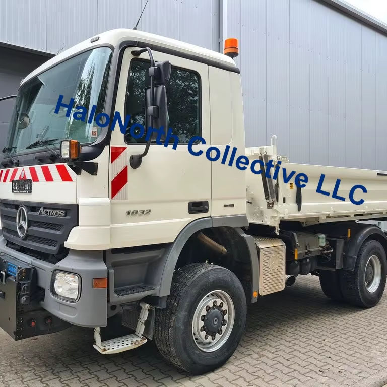 รถบรรทุกดัมพ์ดีเซลสำหรับงานหนัก ปี 2007 ใช้สำหรับรถเมอร์เซเดส-เบนซ์ 1832 ขับเคลื่อน 4 ล้อ ยูโร 4 พวงมาลัยซ้าย รับน้ำหนักได้ 31-40 ตัน น้ำหนักรถรวม 10-15 ตัน