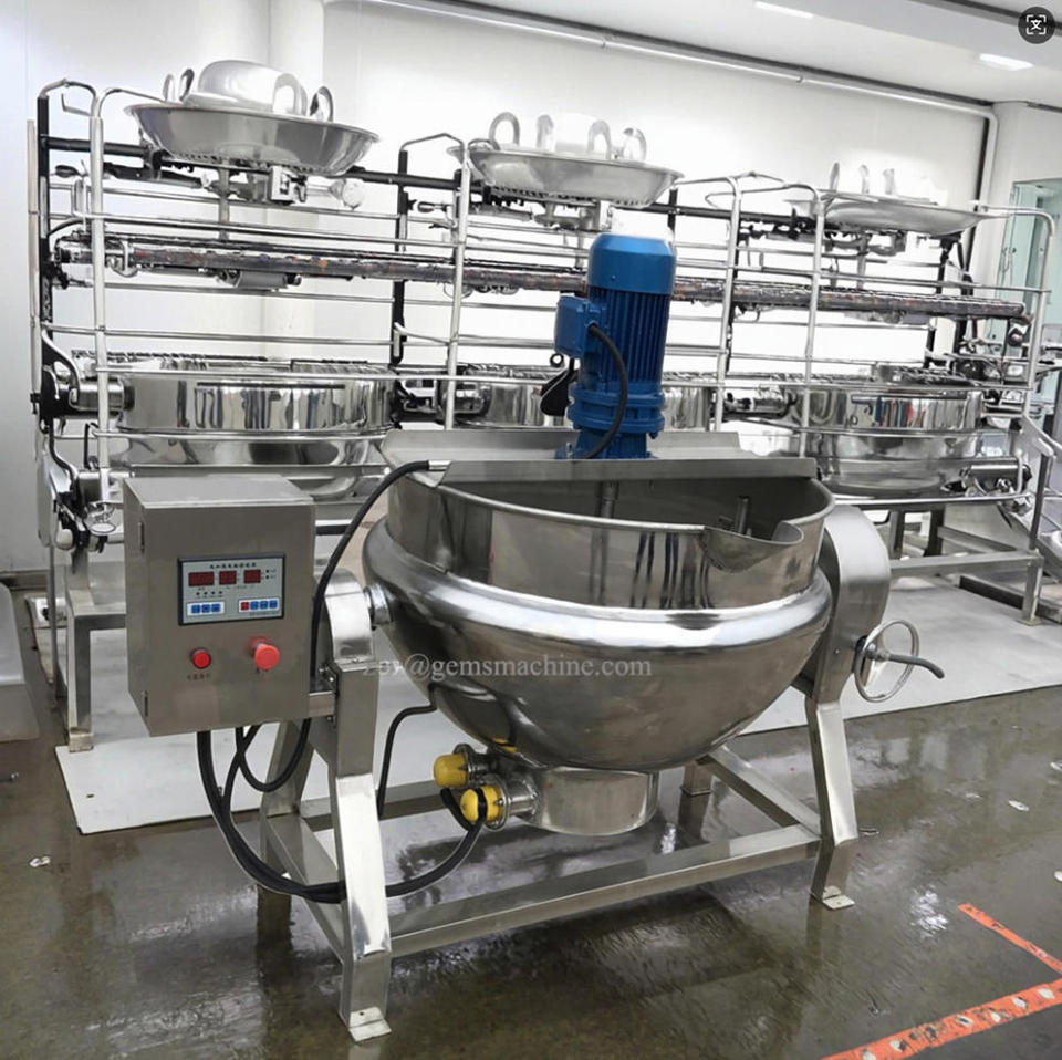 เครื่องต้มซอสมะเขือเทศอุตสาหกรรมขนาด 200 ลิตร เครื่องผสมและต้มซอสมะเขือเทศขนาดเล็ก เครื่องปั่นผสมซอสมะเขือเทศสำหรับพิซซ่า