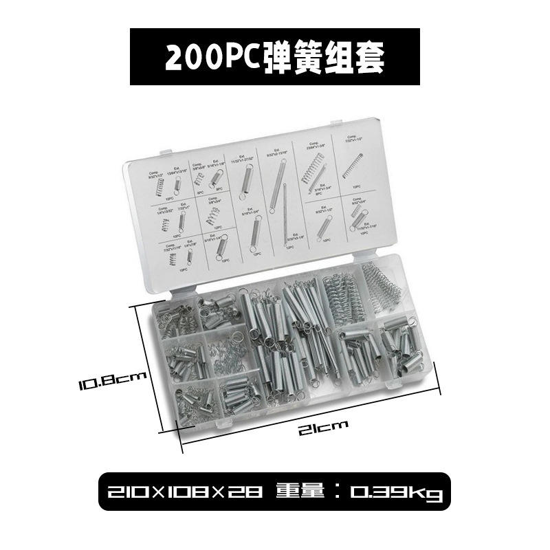 ชุดสปริงอัดทรงกระบอกแบบข้ามพรมแดน 200 ชิ้น บรรจุในกล่องพลาสติก PP ดีไซน์สวยงาม สำหรับงานผลิตสปริง