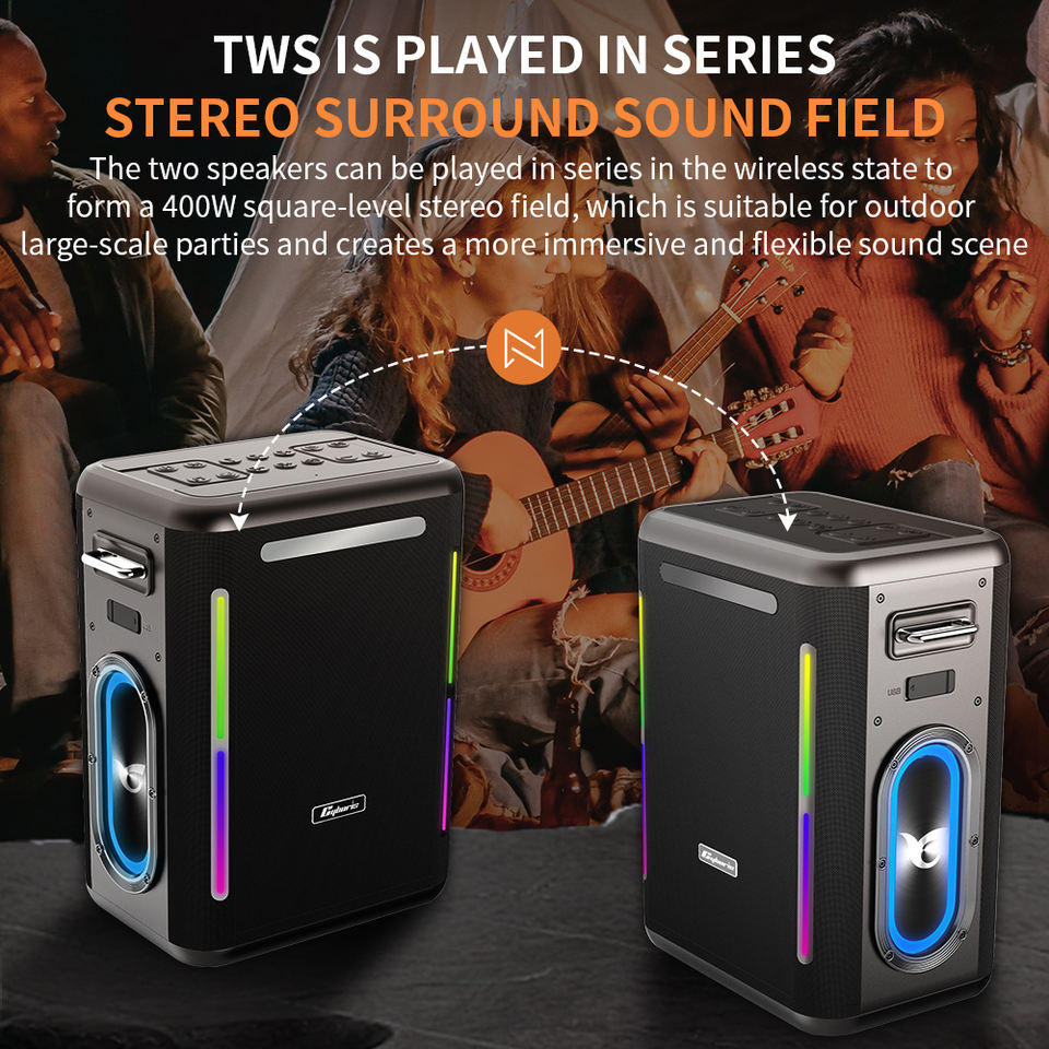 ลำโพงคาราโอเกะบลูทูธไร้สาย200W, ลำโพงคาราโอเกะแบบพกพาเสียงรอบทิศทาง3D ไร้สายสำหรับกลางแจ้งวิทยุ FM/ เสียงอะคูสติก TWS เครื่องเล่นเมมโมรี่การ์ด