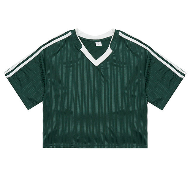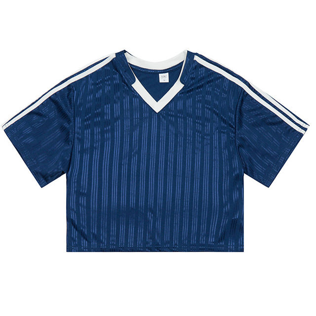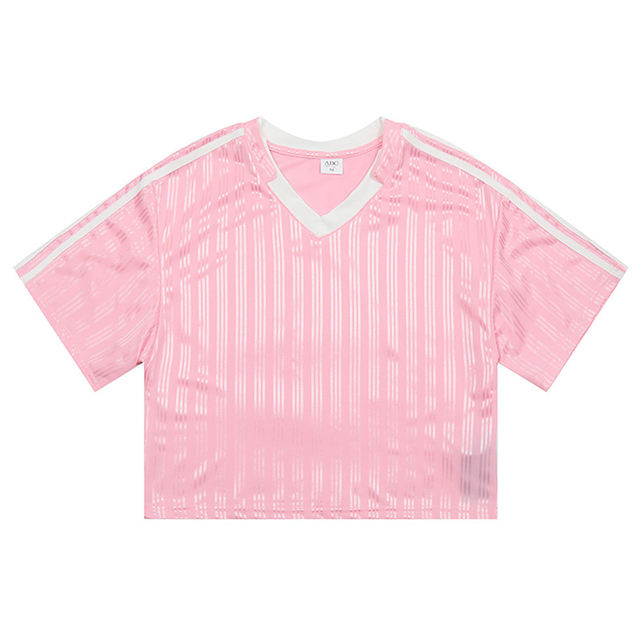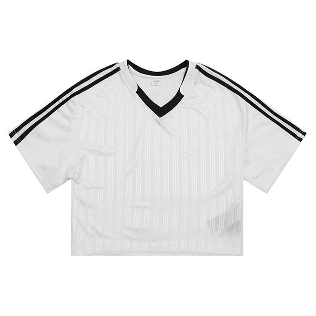 เสื้อยืดลำลองแฟชั่นผู้หญิงสไตล์สปอร์ต น้ำหนัก 260 กรัม แขนสั้น ลายทาง คอวี แต่งโลโก้ ตัดสี ดีไซน์ทันสมัย ใส่ได้หลายโอกาส คอลเลคชั่นใหม่รับฤดูใบไม้ผลิ