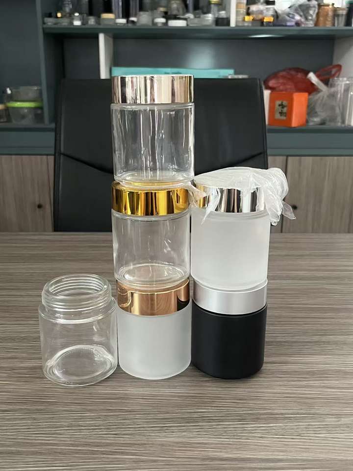 ขวดแก้วใสสีดำด้าน 200 กรัม คุณภาพสูง สำหรับครีม บรรจุภัณฑ์เครื่องสำอาง ฝาหลากสี พิมพ์โลโก้ด้วยเทคนิคซิลค์สกรีน