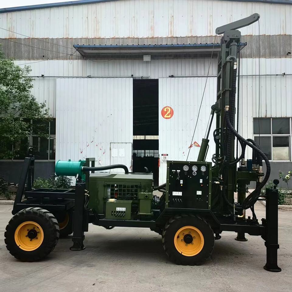 เครื่องเจาะบ่อน้ำแบบเคลื่อนที่ติดตั้งบนรถพ่วง 200 เมตร ใช้เครื่องยนต์ดีเซล พร้อมขาไฮดรอลิกและหอคอย