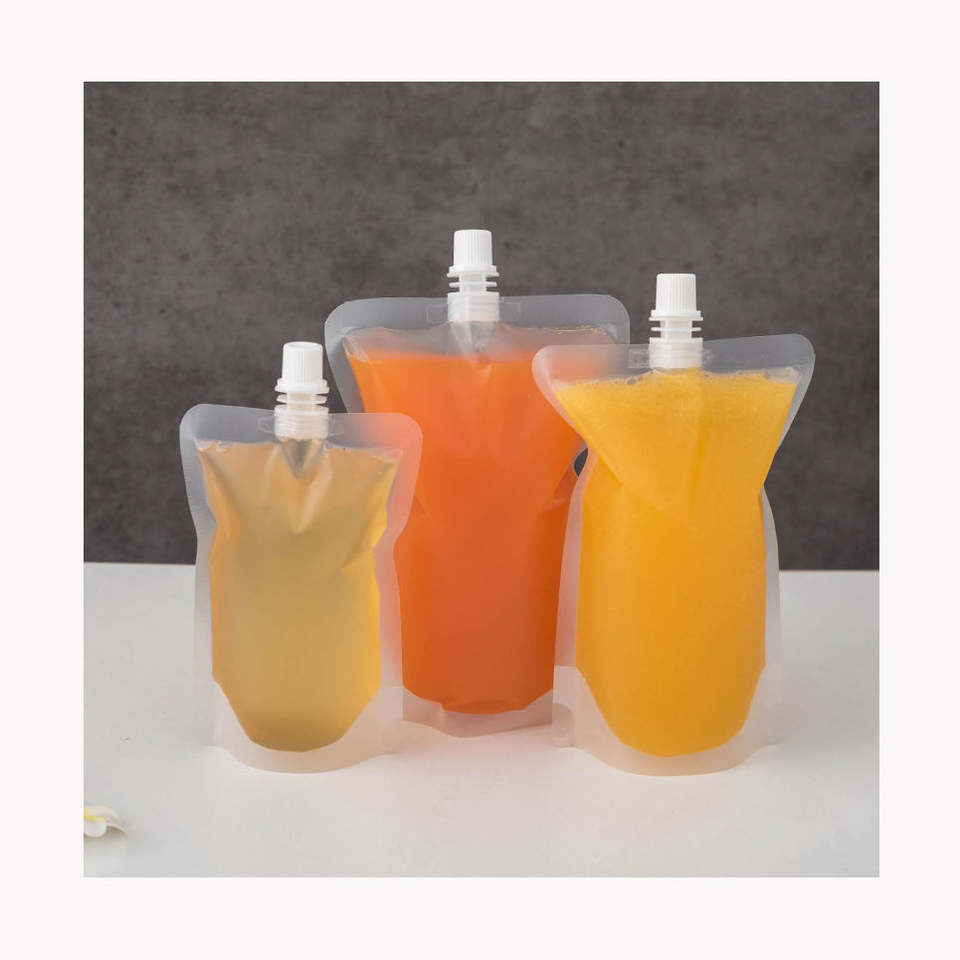 ถุงพลาสติกใสแบบมีพวยสำหรับบรรจุเครื่องดื่ม ขนาด 200 มล. 30 มล. ใช้แล้วทิ้ง เกรดสำหรับอาหาร ยี่ห้อ HX ผลิตจากวัสดุ BOPP+PET+PE