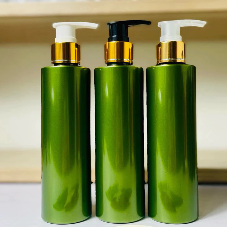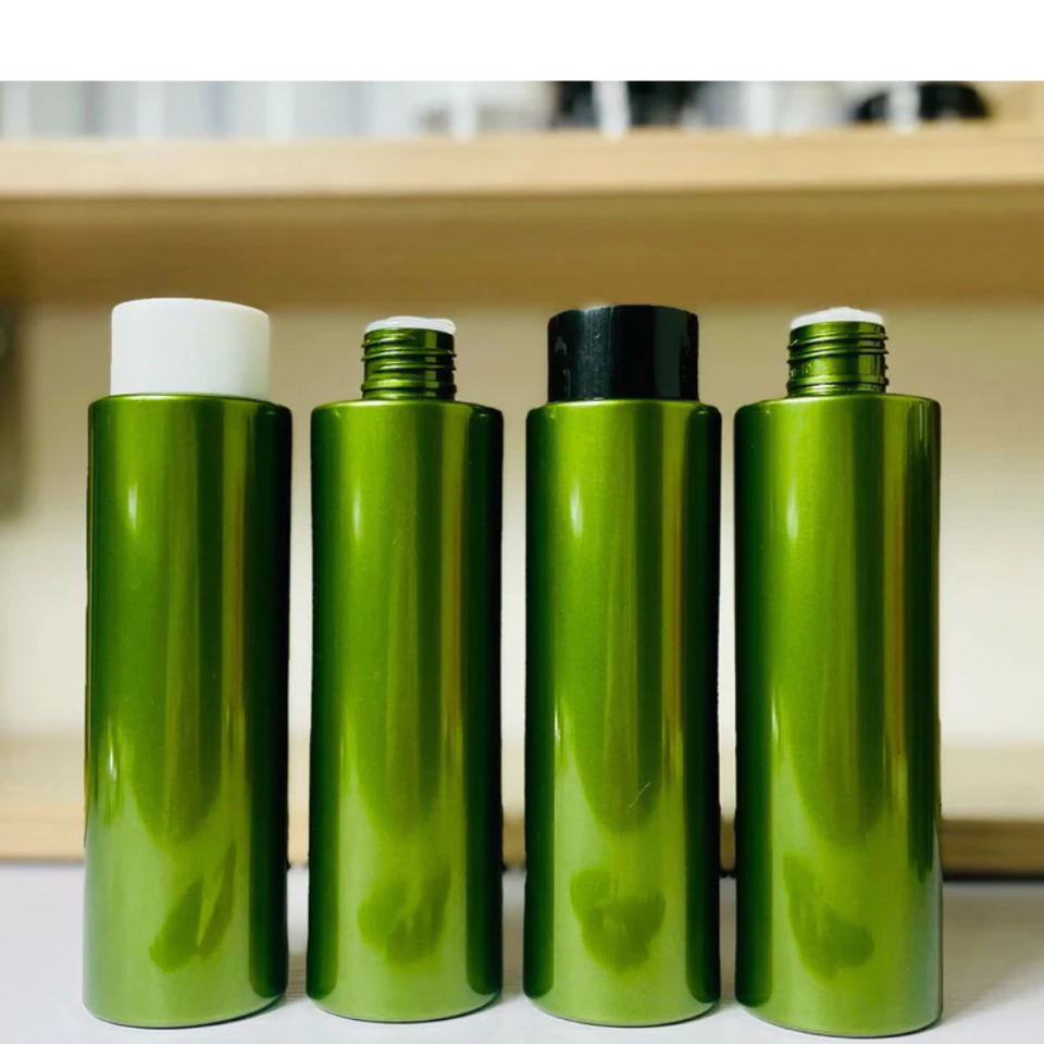 ขวดพลาสติกสีเขียวขนาด200มล. พร้อมไหล่ตามแนวนอนหัวฉีดปั๊มชนิดต่างๆ-สเปรย์ไอน้ำ-หัวฉีดปั๊มฝาปิดแบบพลิกได้