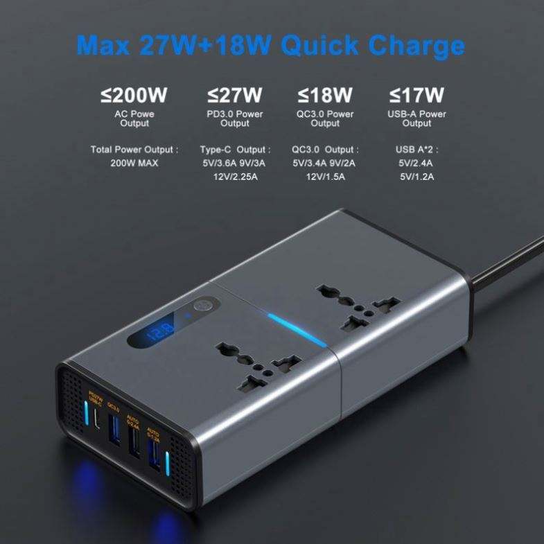 200w Universal Socket Power Inverter DC AC Converter 12V 24V to 110V 120V 220V 230V Car Inverter