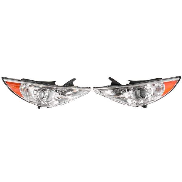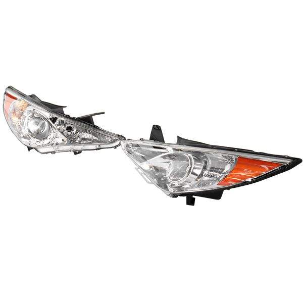 2011-2014 for Hyundai Sonata Pair LED Headlights Chrome Housing with Amber Corner Projector LH RH