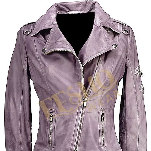 Asymmetric style ladies leather jacket