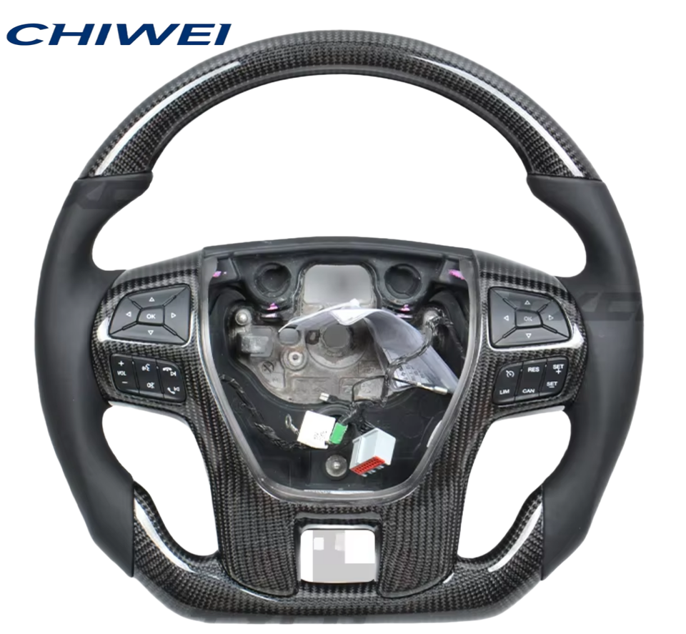 พวงมาลัยหนังคาร์บอนไฟเบอร์ 4 ก้าน สำหรับ Everest Ranger ปี 2015-2023 พร้อมไฟ LED ระบบทำความร้อน ทรงสปอร์ต แบบแบนด้านล่าง แบบกำหนดเอง