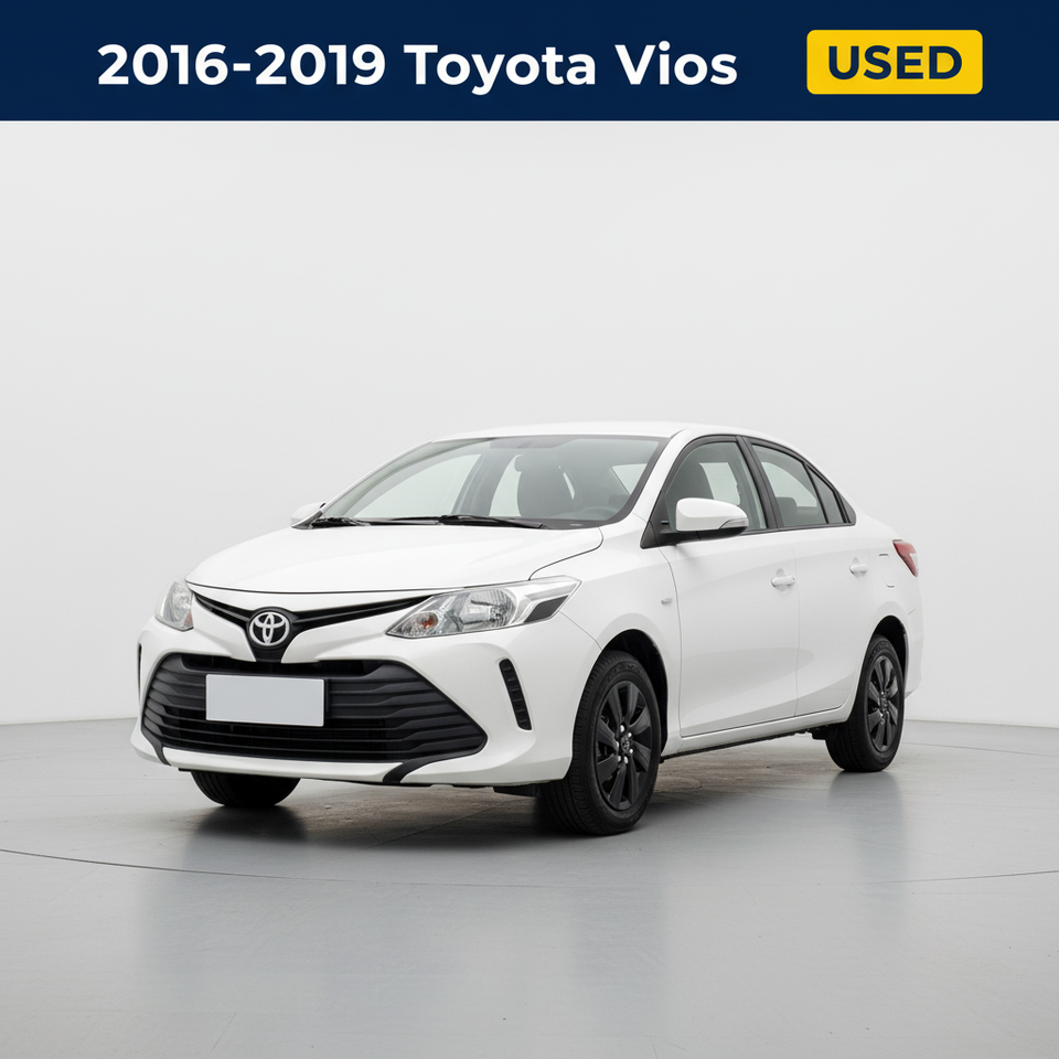 โตโยต้า วีออส ปี 2016 2017 2018 2019 รถเก๋งมือสอง เครื่องยนต์เบนซิน 1.5 ลิตร เกียร์ออโต้ ขับเคลื่อนล้อหน้า พวงมาลัยซ้าย มีสต็อกจำนวนมาก