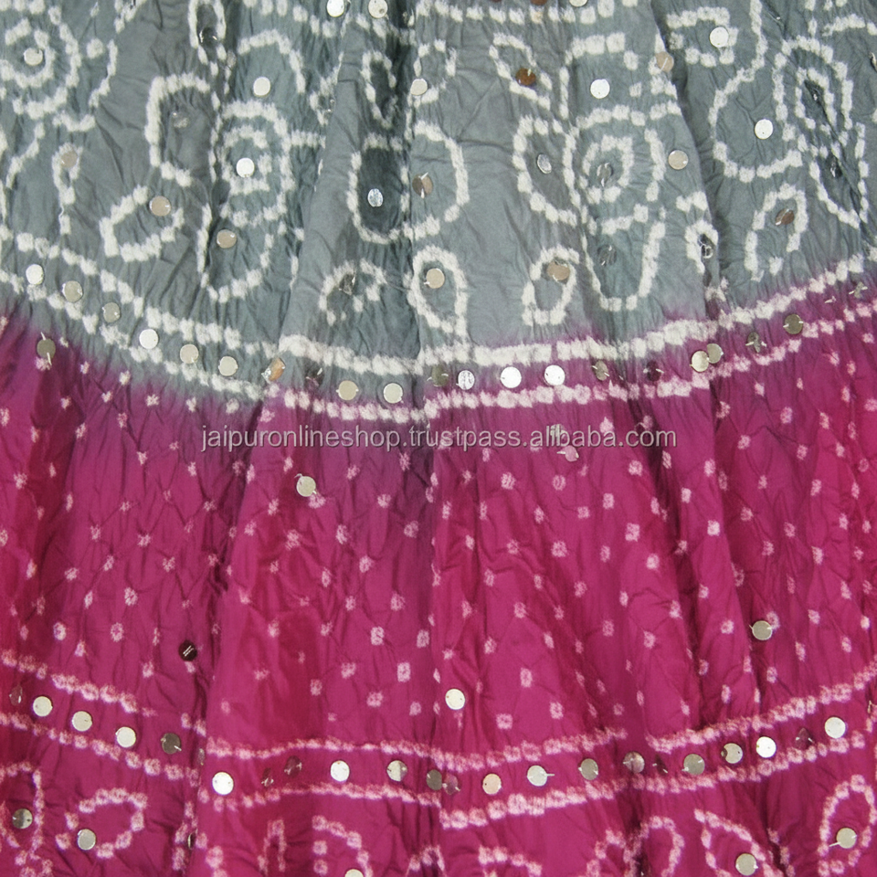 2016ใหม่ล่าสุดผ้าฝ้ายอินเดีย Bandhani Bandhej กระโปรง