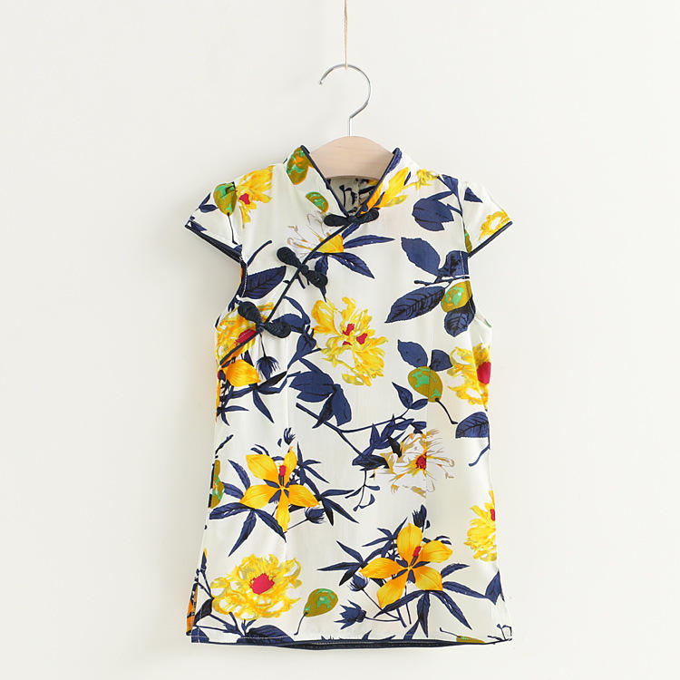 2017 ชุดฤดูร้อนใหม่ชุดจีนแบบดั้งเดิมพิมพ์ชุดกี่เพ้าเด็ก