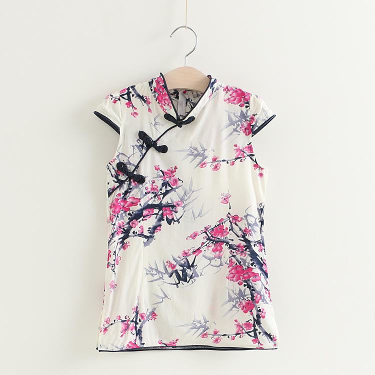 ชุดเดรสฤดูร้อนใหม่ ชุดจีนโบราณลายพิมพ์ กี่เพ้า ชุดเดรสสำหรับเด็ก