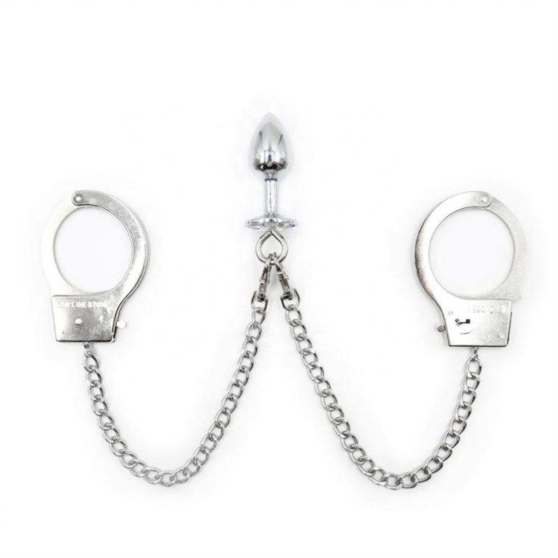 ชุดเครื่องรัดร่างกายสำหรับกิจกรรมทางเพศแบบ BDSM ดีไซน์ล่าสุดปี 2019 สีเงิน พร้อมโซ่โลหะแบบถอดได้ ปลอกข้อมือโลหะ และปลั๊กทวารหนัก
