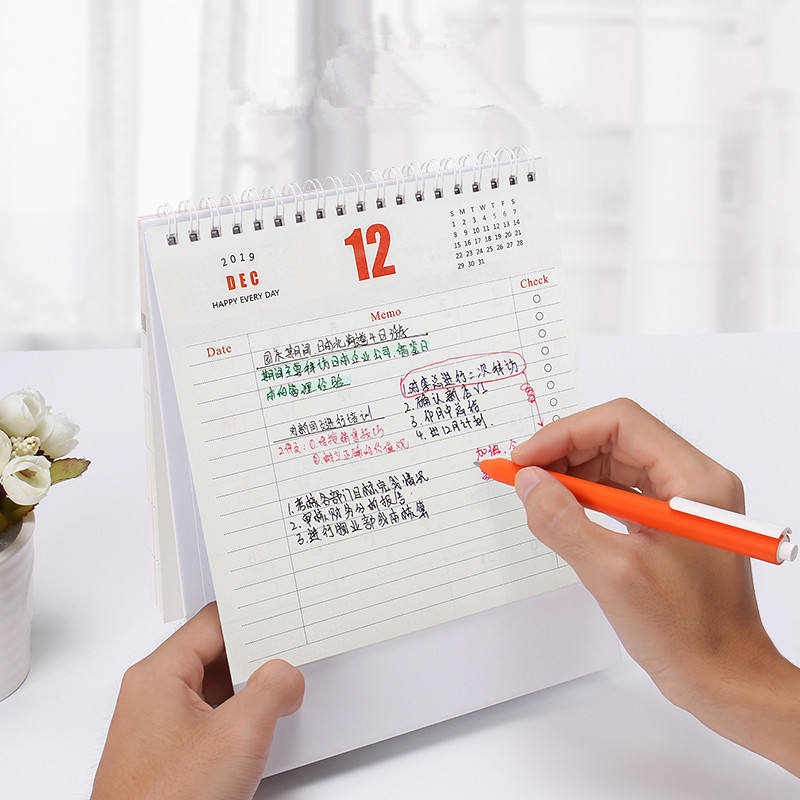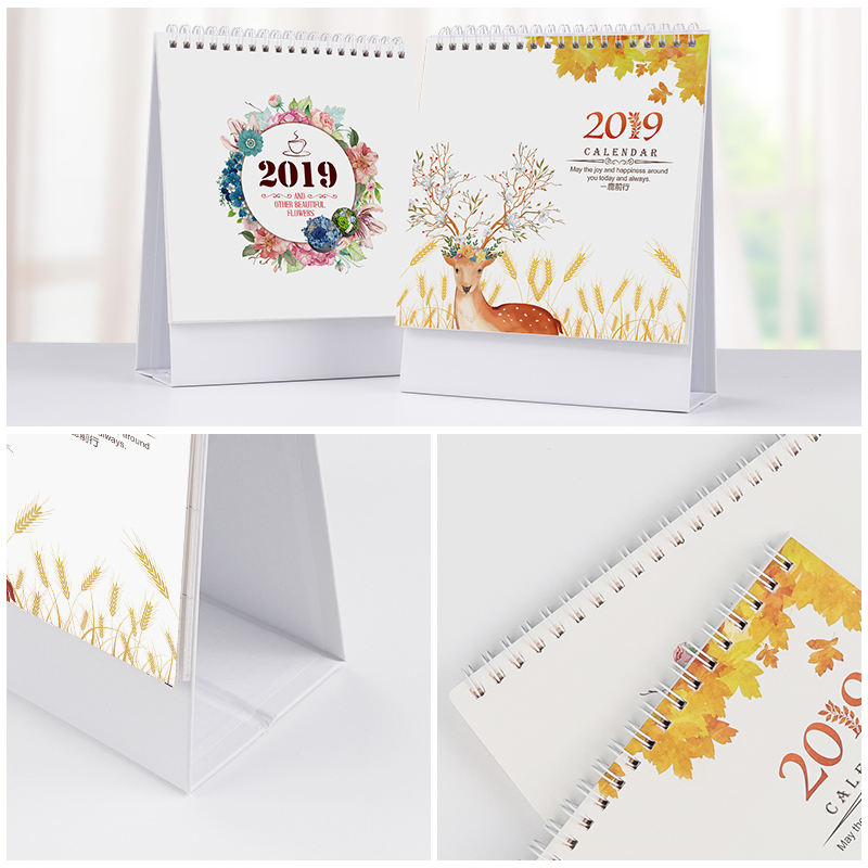 2019ปฏิทินตั้งโต๊ะกระดาษตกแต่งโต๊ะพร้อมนาฬิกาและวันที่กำหนดเวลาออกแบบใหม่