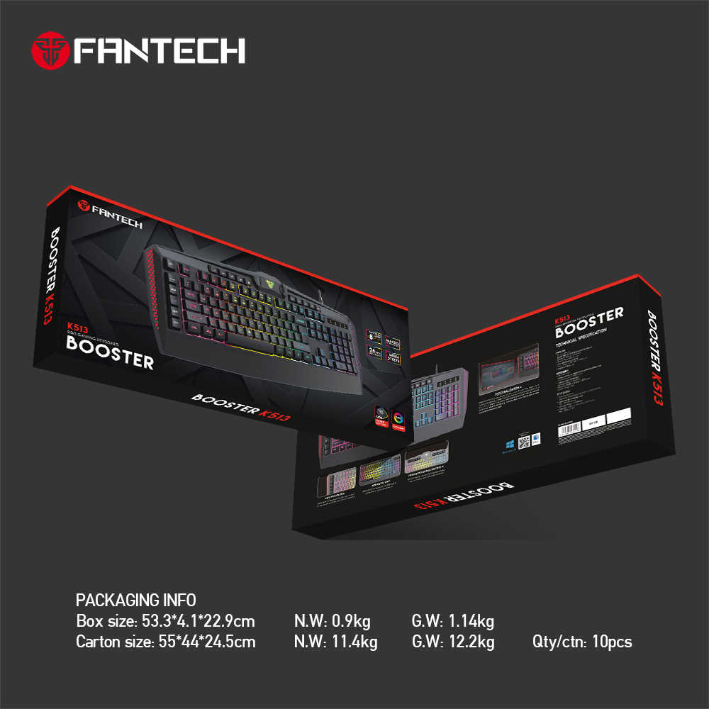 2020 Fantech K513เมมเบรนมาโคร8โหมดแสงพร้อมซอฟต์แวร์คีย์บอร์ดเล่นเกมมัลติมีเดีย
