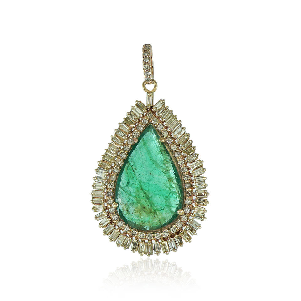 จี้เพชรทรงบาแกตต์แท้ ทองคำ 14k สีเหลือง ประดับมรกตทรงหยดน้ำ เครื่องประดับชั้นดี ขายส่ง เครื่องประดับงานแต่งงานทำมือ