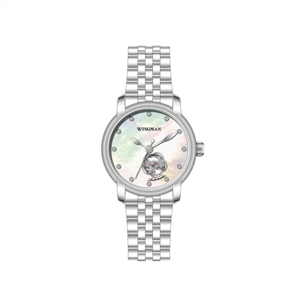 นาฬิกาข้อมือผู้หญิงแบบกลไก สแตนเลสสตีล ดีไซน์ใหม่ ปี 2020 ผลิตตามสั่ง ขายส่ง คุณภาพสูง กันน้ำ