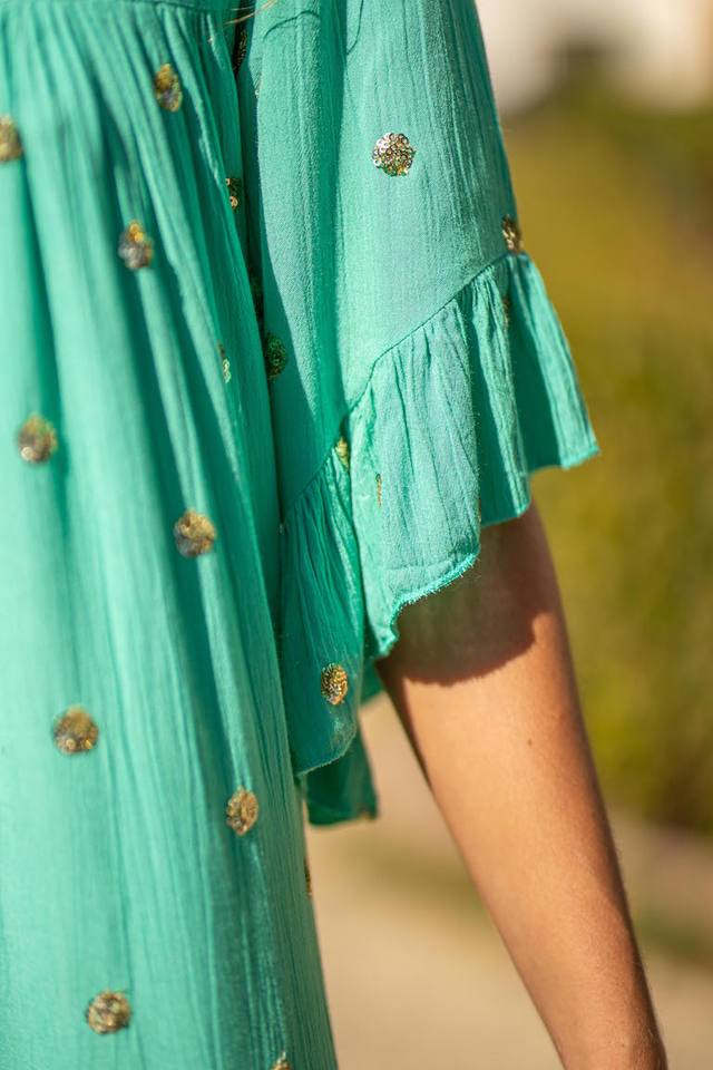 ชุดแม็กซี่เดรสคอกลมติดขอบชิ้นเดียว,ชุดเดรสปักลายมีพู่แขนยาวครึ่งแขนคอลเลกชันปี2020