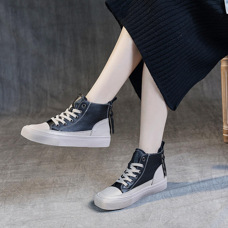 รองเท้ากีฬาลำลองสตรีพื้นหนาหนังแท้แบบผูกเชือกสีดำ/ น้ำตาล2021ฤดูใบไม้ร่วง