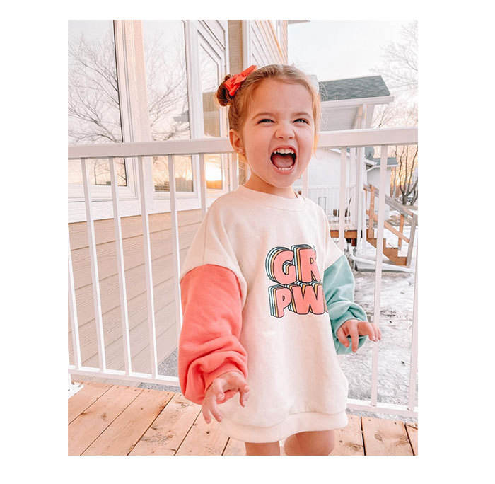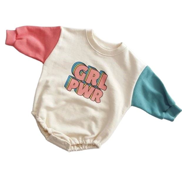 เสื้อสเวตเชิ้ตโอเวอร์ไซส์ลายพิมพ์ฤดูใบไม้ร่วงฤดูหนาวปี 2021 ชุดรอมเปอร์เด็กทารกแบบต่อผ้าสีตัดกันที่แขนเสื้อ