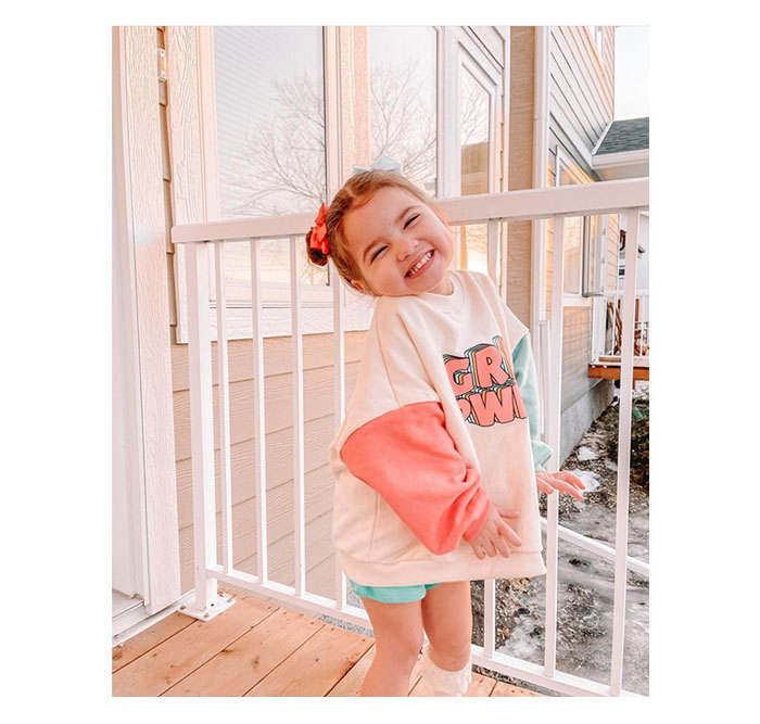 เสื้อสเวตเชิ้ตโอเวอร์ไซส์ลายพิมพ์ฤดูใบไม้ร่วงฤดูหนาวปี 2021 ชุดรอมเปอร์เด็กทารกแบบต่อผ้าสีตัดกันที่แขนเสื้อ
