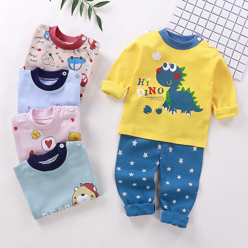 ชุดเสื้อผ้าเด็กฤดูใบไม้ร่วงและฤดูหนาวปี 2021 แขนยาว + กางเกงขายาว ลายการ์ตูน น่ารัก สบาย สำหรับเด็กชายและเด็กหญิง