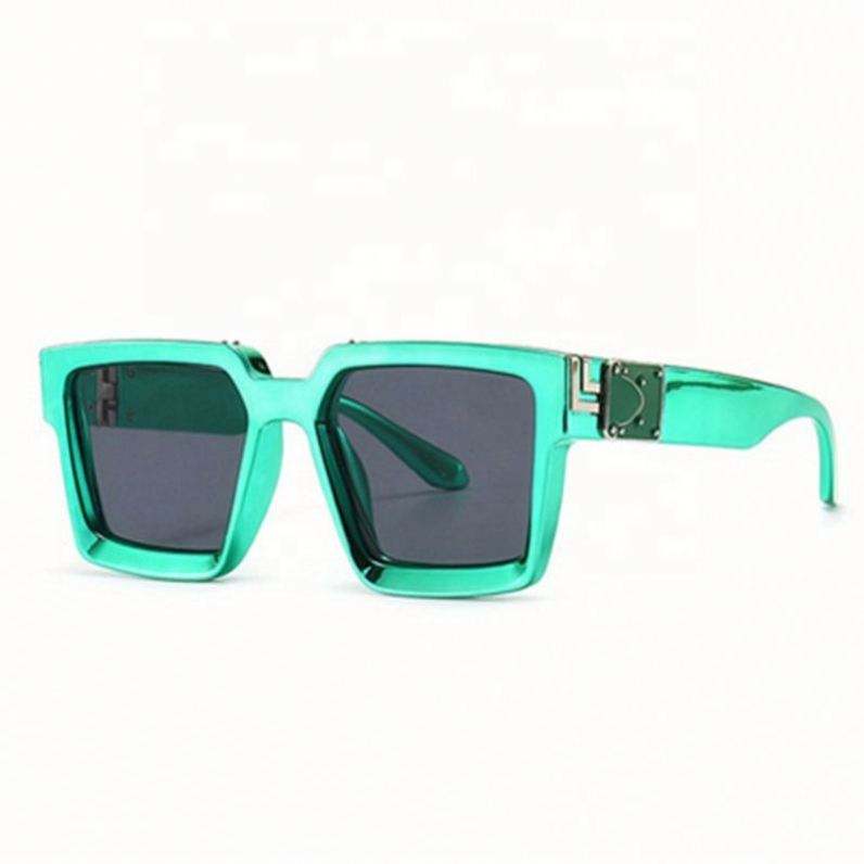 แว่นกันแดดทรงสี่เหลี่ยมขนาดใหญ่สีชมพูเหลืองแฟชั่นใหม่ล่าสุดปี 2021 พร้อมโลโก้สั่งทำพิเศษสำหรับผู้ชาย ป้องกันรังสียูวี 400