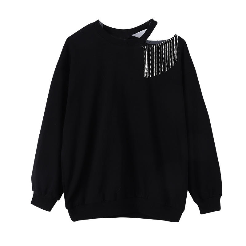เสื้อสเวตเตอร์พู่ห้อยสีชมพูสดใสทรงโอเวอร์ไซส์สำหรับเด็กผู้หญิงแฟชั่นปี 2021 สีดำ สำหรับเด็กอายุ 5-15 ปี