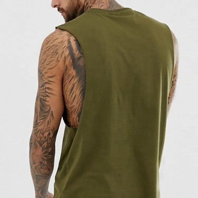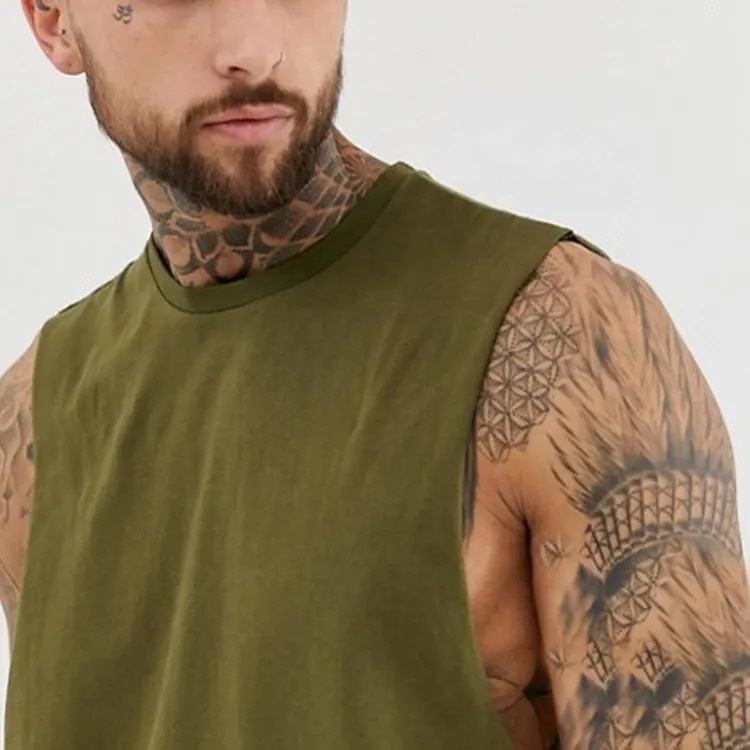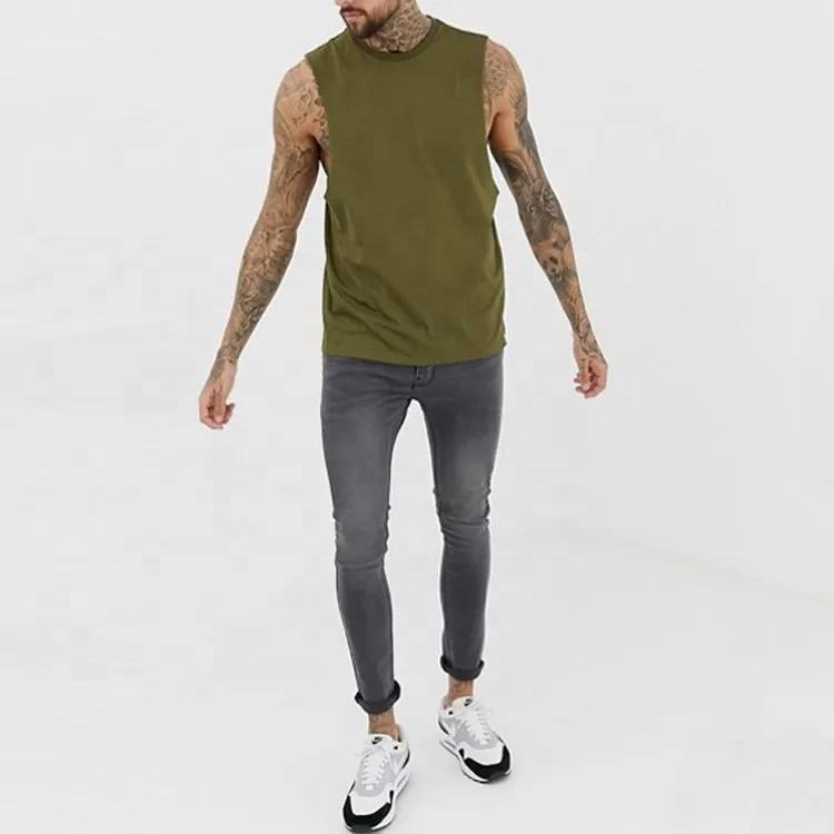 2021คุณภาพสูงตัดเสื้อด้านบนถังด้านบนผู้ชาย Olive 95% Cotton 5% Elastane ลึกตัดกล้ามเนื้อ Tee