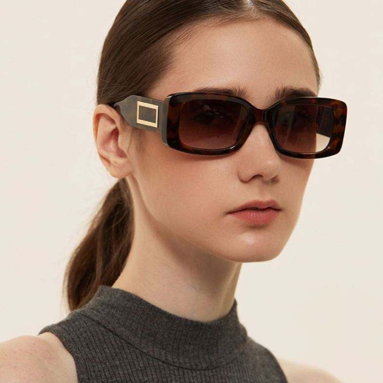 แว่นกันแดดทรงเหลี่ยมเล็ก รุ่นฮิตปี 2021 แฟชั่นย้อนยุค สกรีนโลโก้ได้ สำหรับผู้หญิงและผู้ชาย ป้องกันรังสียูวี 400
