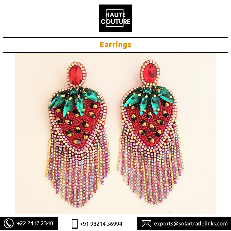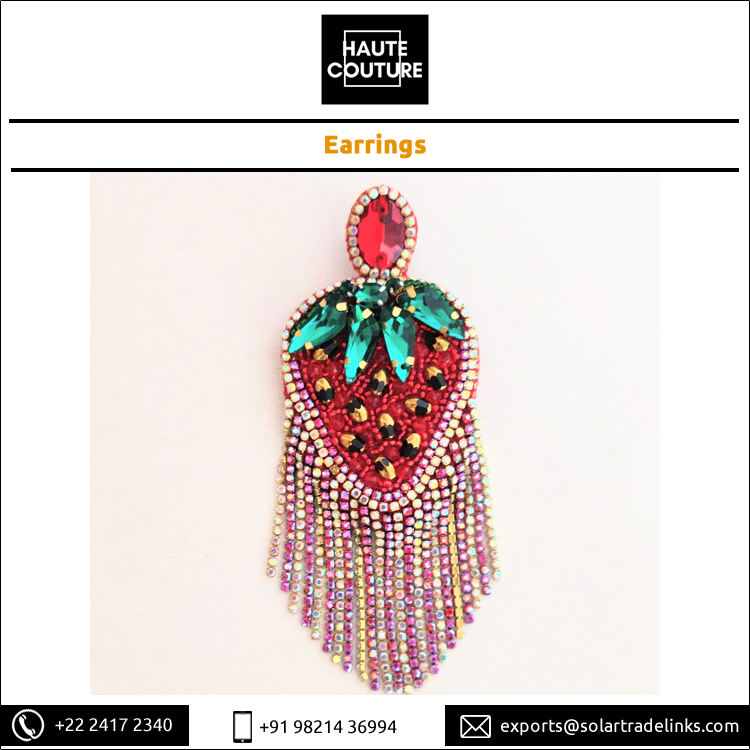 Model Number:Strawberry Green Leaf Crystal Earrings