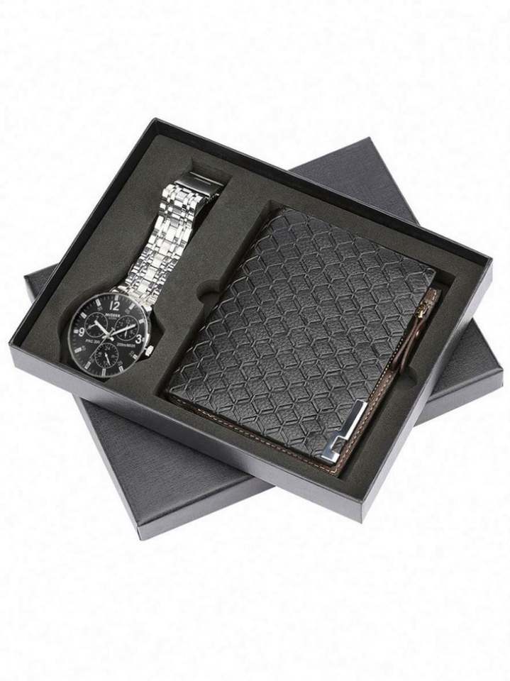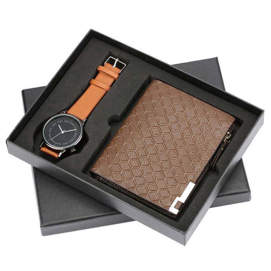 ชุดนาฬิกาและกระเป๋าสตางค์สำหรับผู้ชายปี 2021 บรรจุภัณฑ์สวยงาม พร้อมกลไกควอตซ์และตัวล็อคสแตนเลส เหมาะสำหรับเป็นของขวัญวันพ่อ