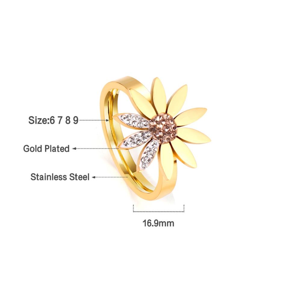 แหวนเพชรซิคอนดีไซน์ใหม่ปี 2021 สำหรับผู้หญิง ชุบทอง 18k แหวนลายดอกไม้เรียบง่าย