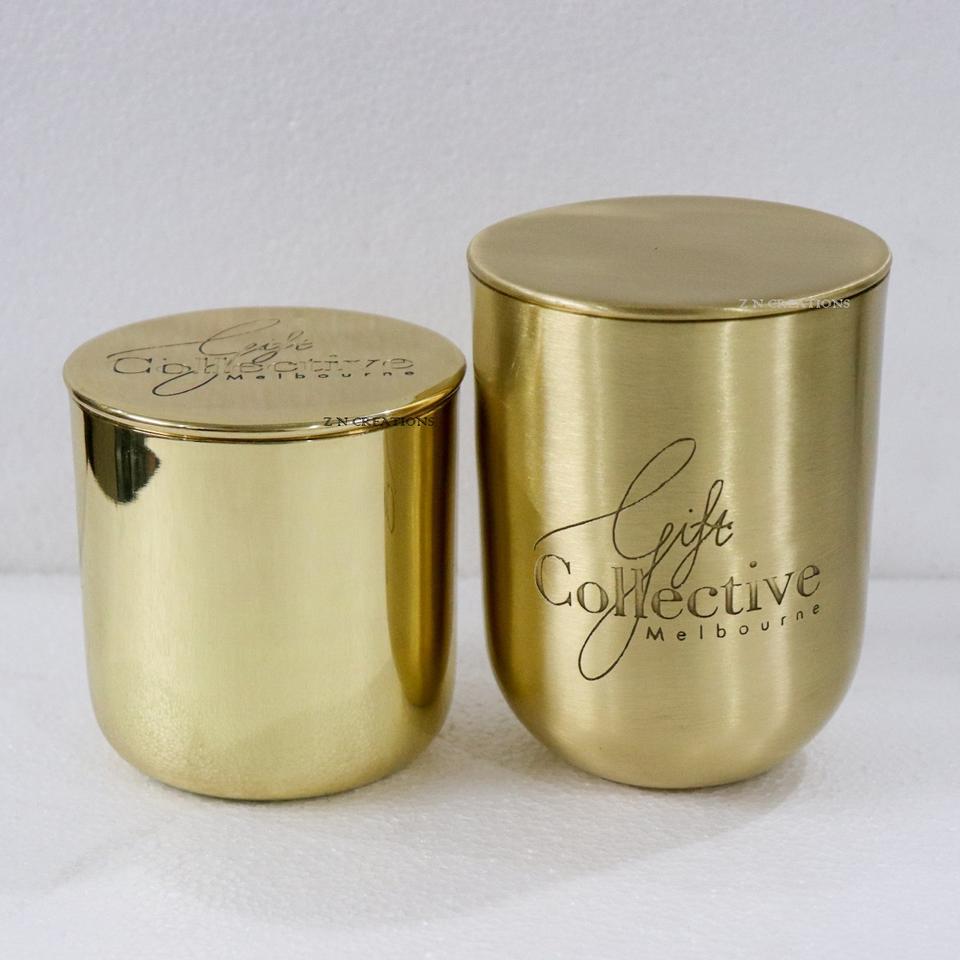 ขวดเทียนทองเหลืองดีไซน์ใหม่สุดหรูสั่งทำพิเศษสำหรับทำเทียนพร้อมฝาปิดสำหรับเทียนหอมและเทียนไขถั่วเหลือง