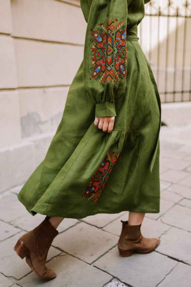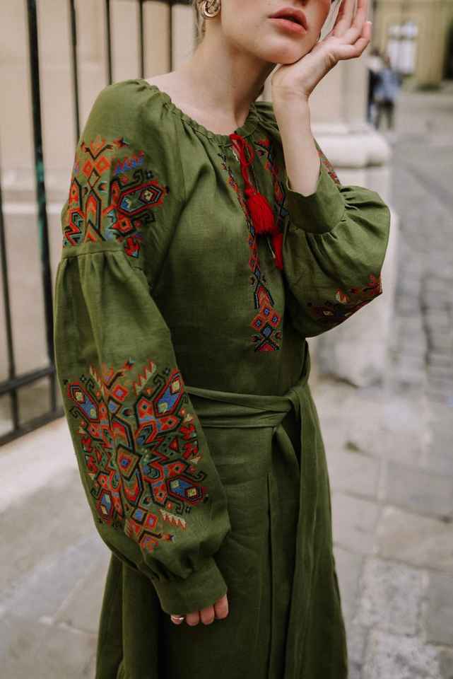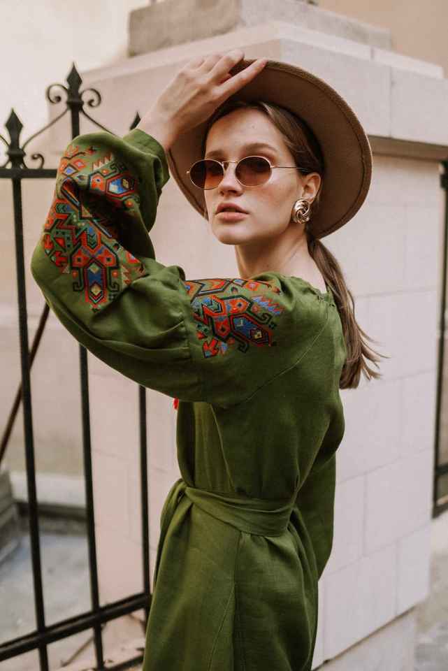 ชุดเดรสสไตล์โบโฮทรงหลวมพอดีตัวของผู้หญิง,ชุดเดินชายหาดคอวีงานปักลายด้วยมือสไตล์ยูเครนใหม่ปี2021