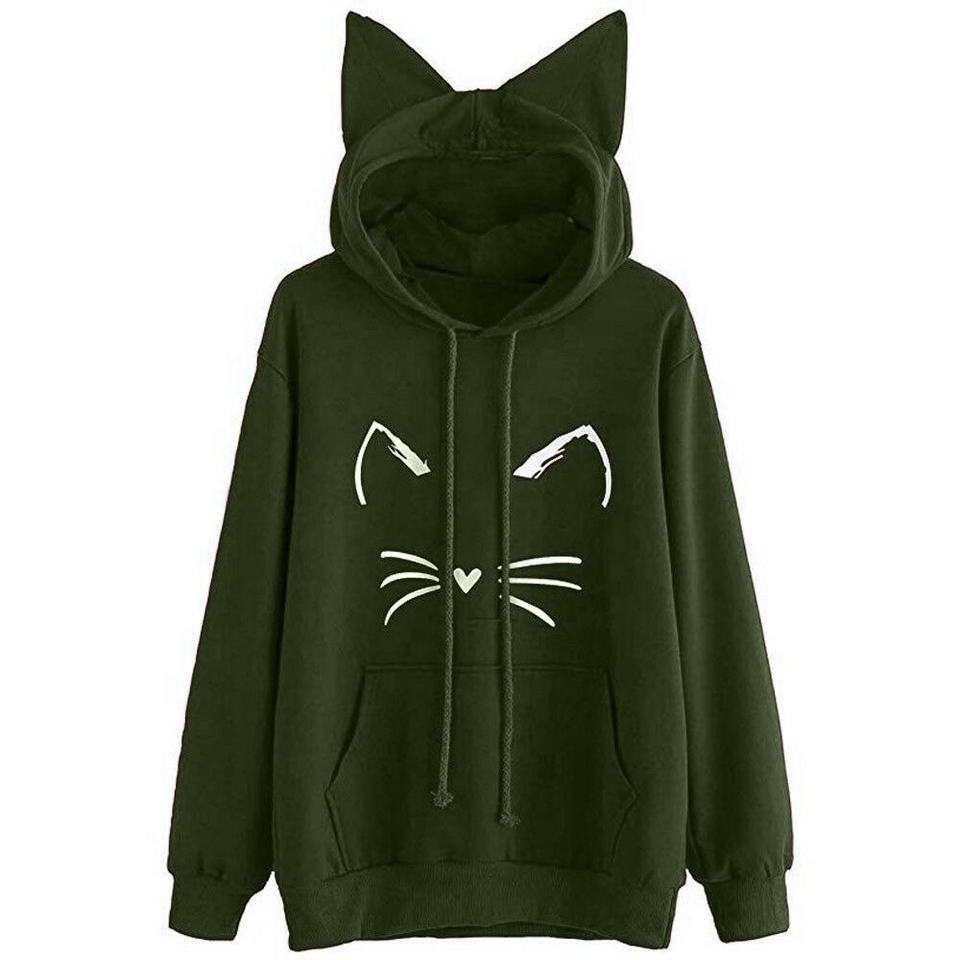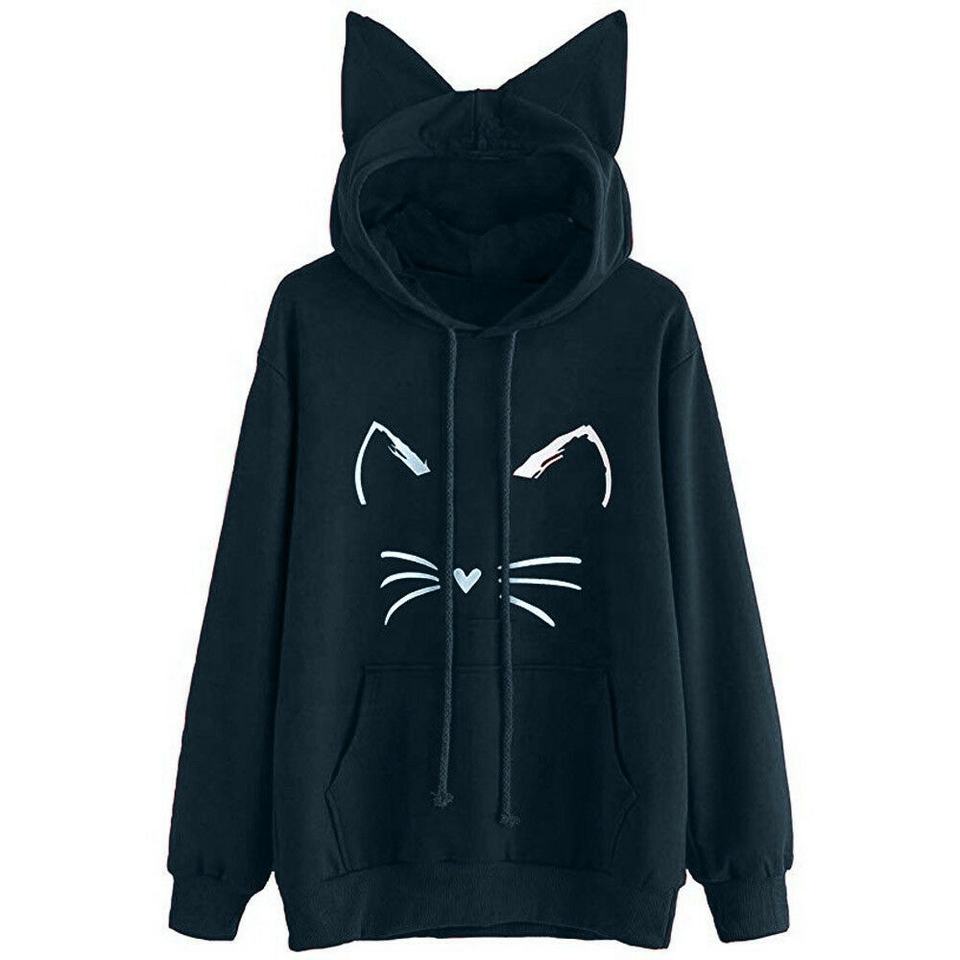 เสื้อสเวตเตอร์มีฮู้ดแขนยาวมีหูแมวของผู้หญิงเสื้อสวมหัวมีกระเป๋าทรงหลวมด้านหน้าสำหรับฤดูใบไม้ร่วงและฤดูหนาว2025ใหม่