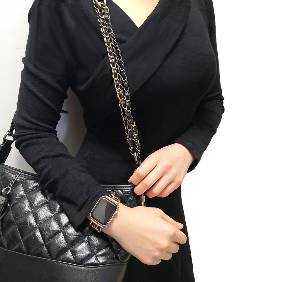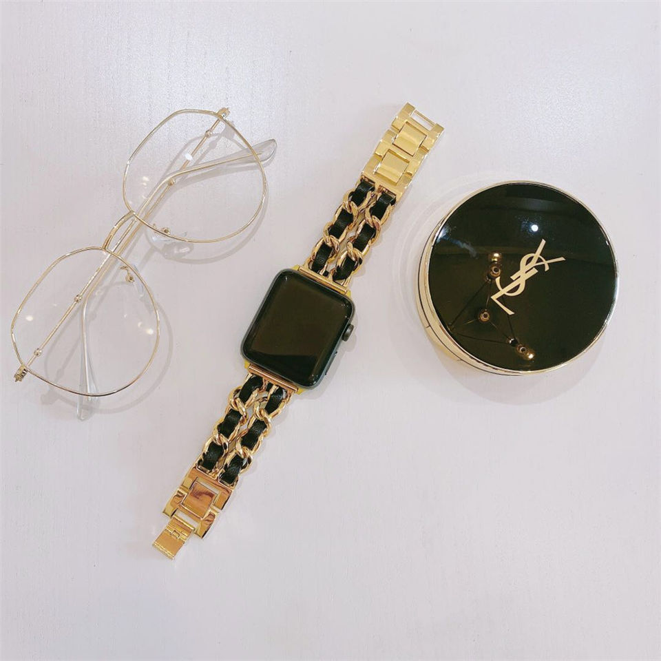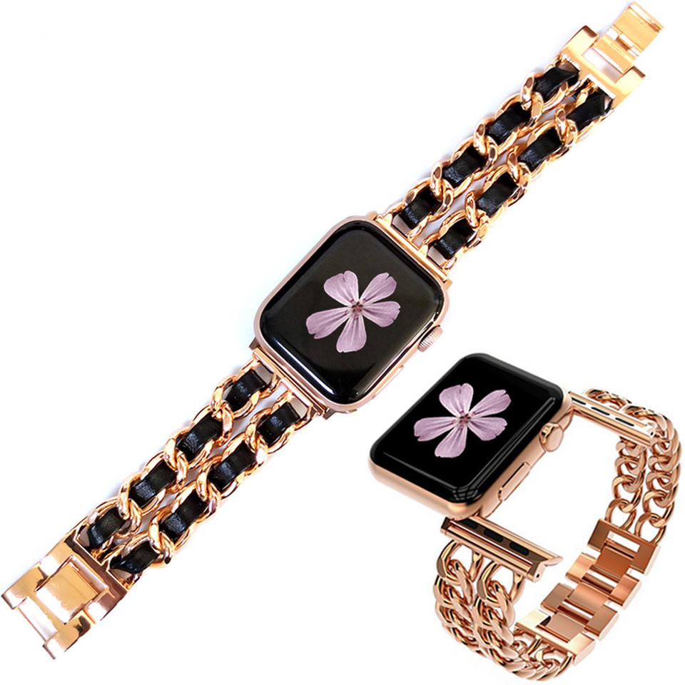 สายนาฬิกาแอปเปิ้ลสำหรับผู้หญิง,สายนาฬิกาใหม่2021ใช้กับ I Watch 1/2/3/4/5โซ่โลหะพร้อมสร้อยข้อมือหนัง