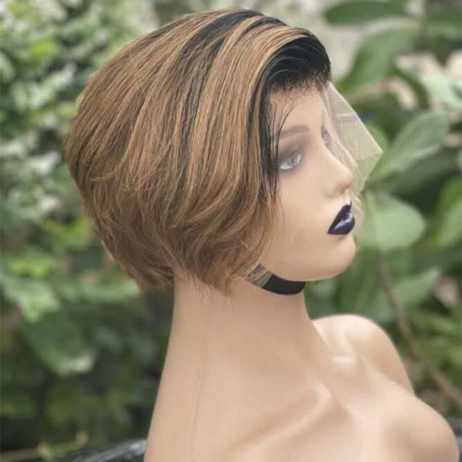 2021ใหม่สไตล์สั้นวิกผมบราซิลเวอร์จินมนุษย์ผมลูกไม้ด้านหน้าวิกผม,เนียนตรงลูกไม้หน้าผากสำหรับผู้หญิงสีดำ