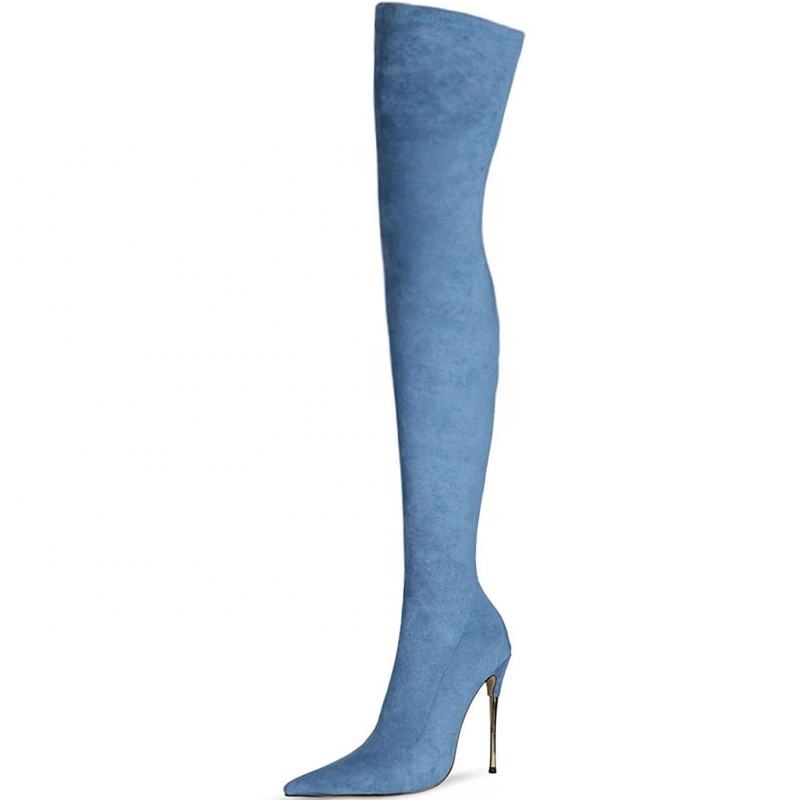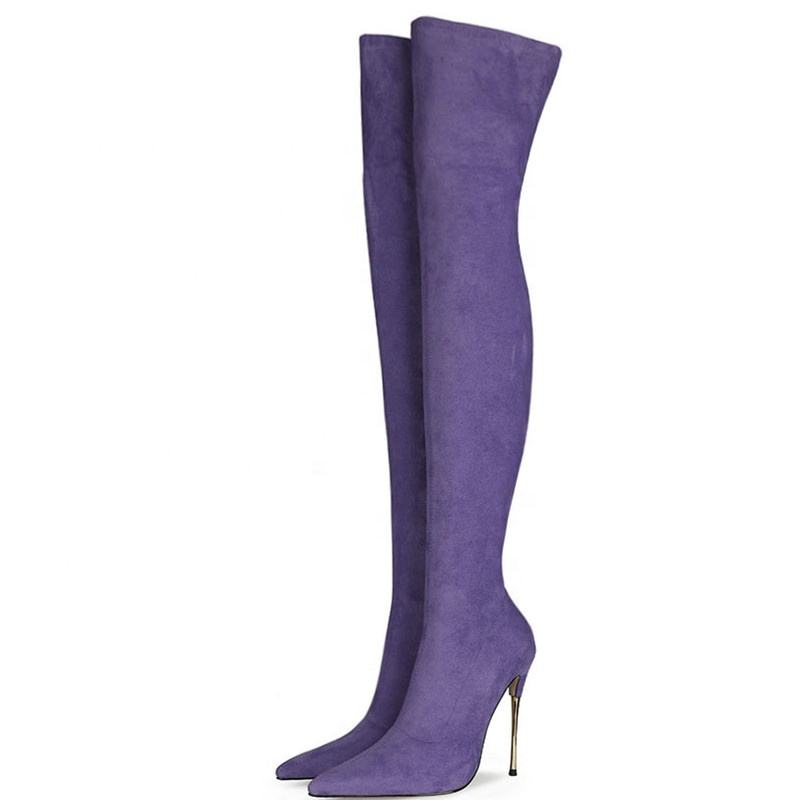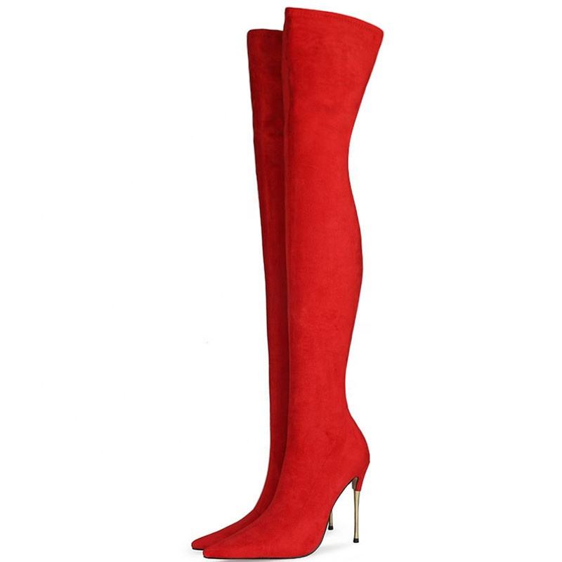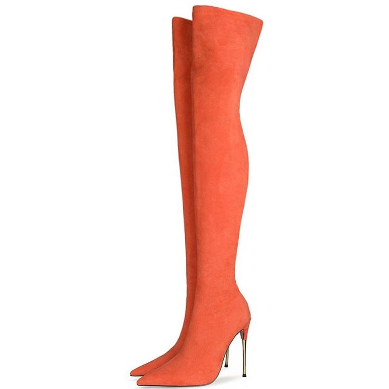 รองเท้าบูทผู้หญิงทรงโมเดิร์น สปริง 2021 แบบสวมสูงเหนือเข่า หัวแหลม ส้นสูงเรียว ผิวสัมผัสนุ่ม สำหรับใส่กลางแจ้ง ส้นสูง 12 ซม.