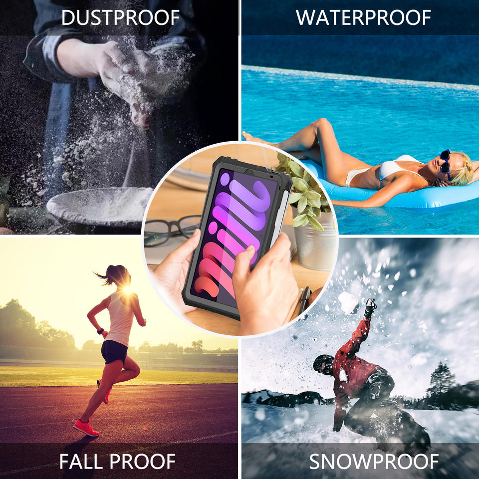 2021 TPU + PC เคสหลังแบบใสกันน้ำกันกระแทกสำหรับไอแพด มินิ 7/6 แท็บเล็ตขนาด 8.3 นิ้ว, สีดำ