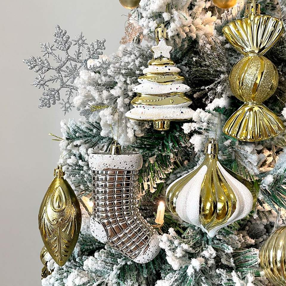 ชุดเครื่องประดับต้นคริสต์มาสสีทอง109กะรัตสี2022หลากสไตล์; ลูกบอลประดับวันคริสต์มาส25แบบ