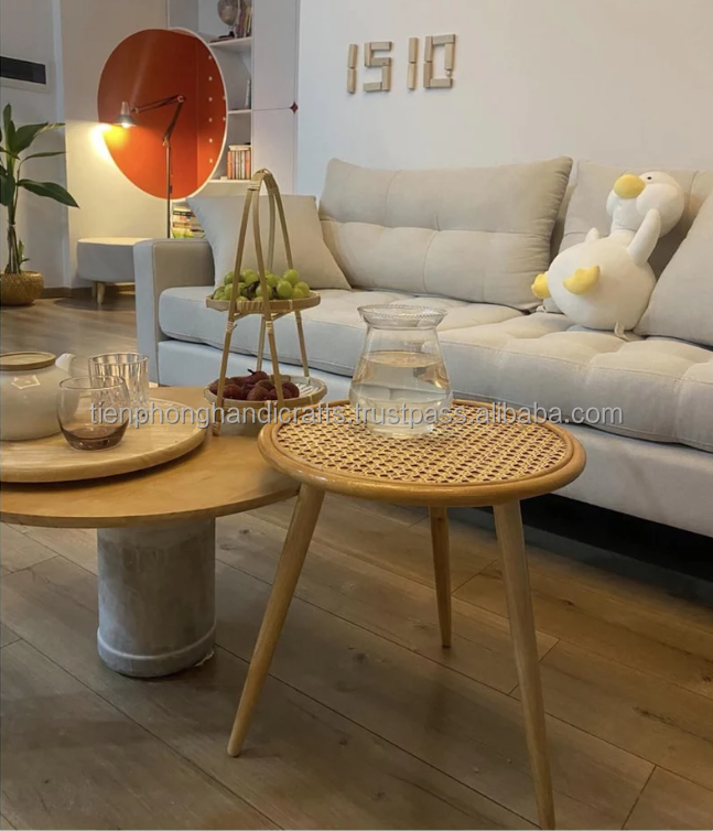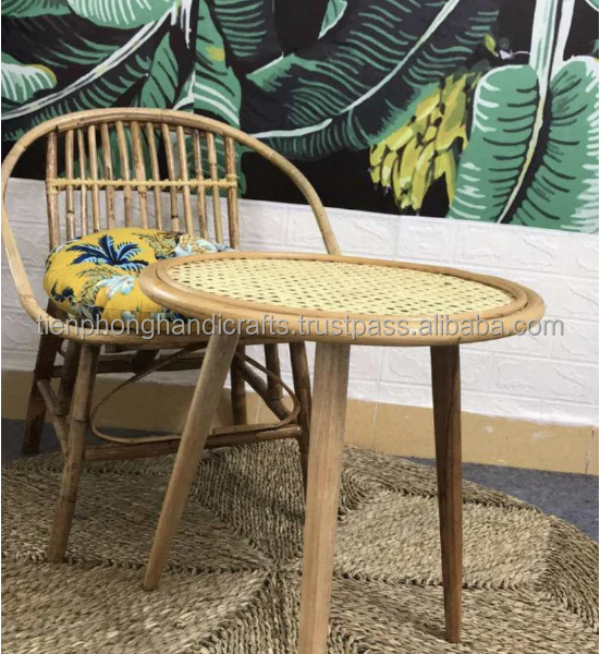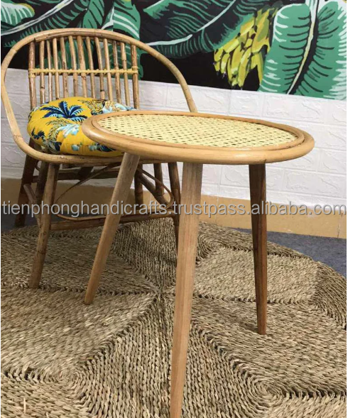 2022ที่ขายดีที่สุดรอบหวายโต๊ะกาแฟที่มีเสื่อสถานที่ที่ทำด้วยมือ