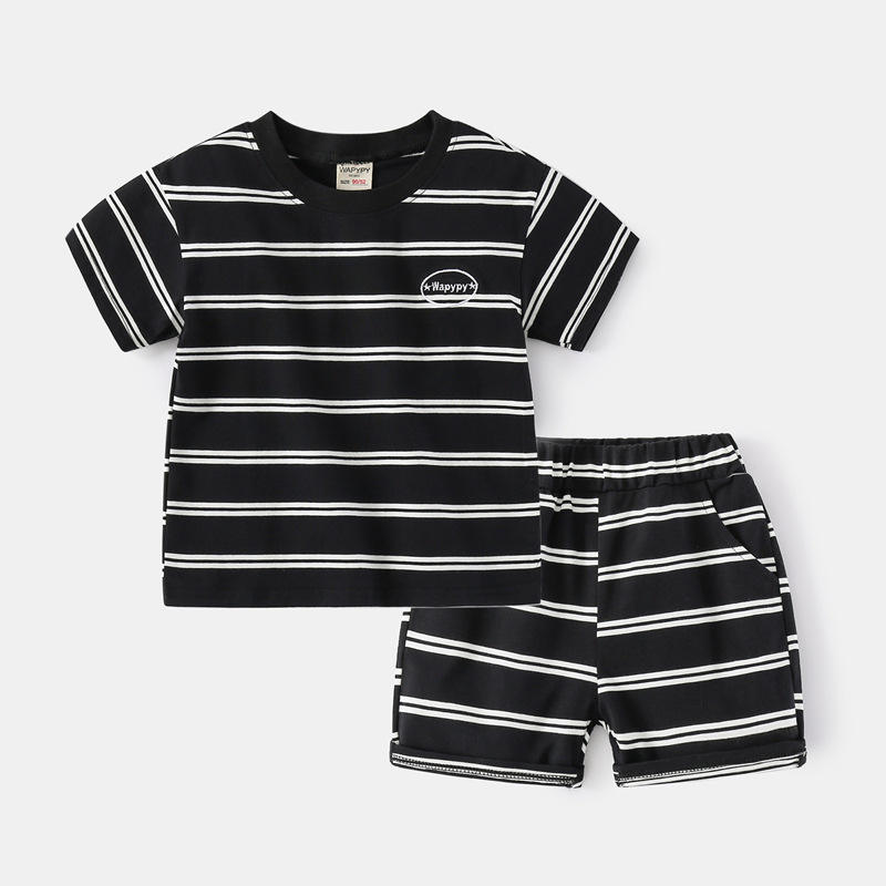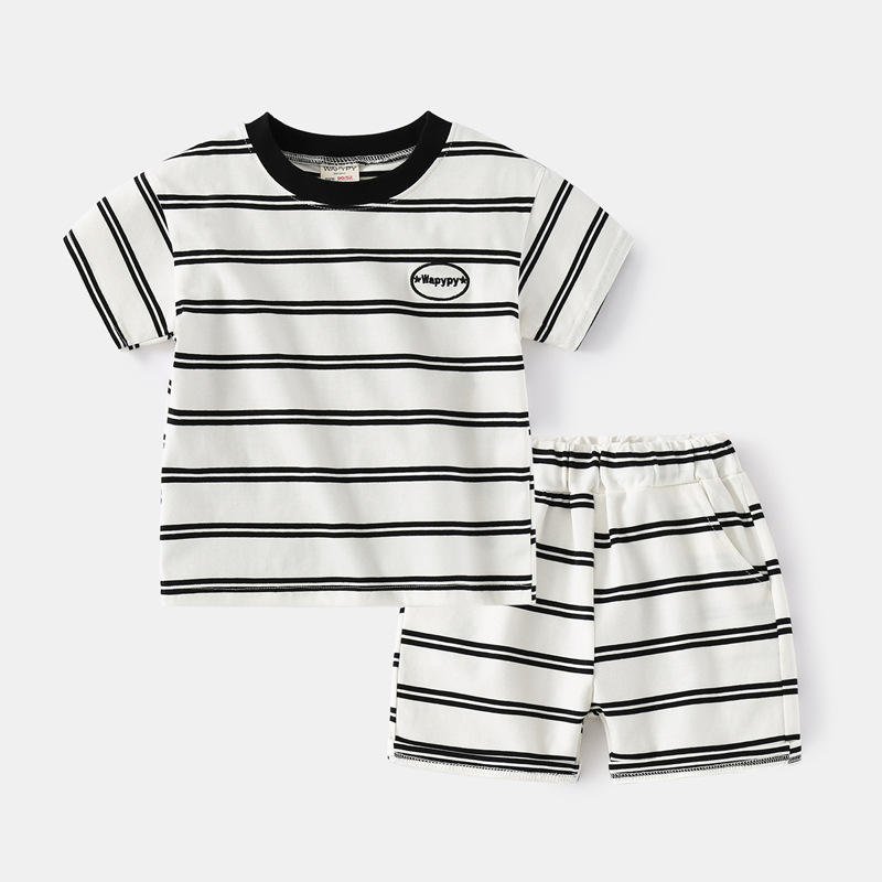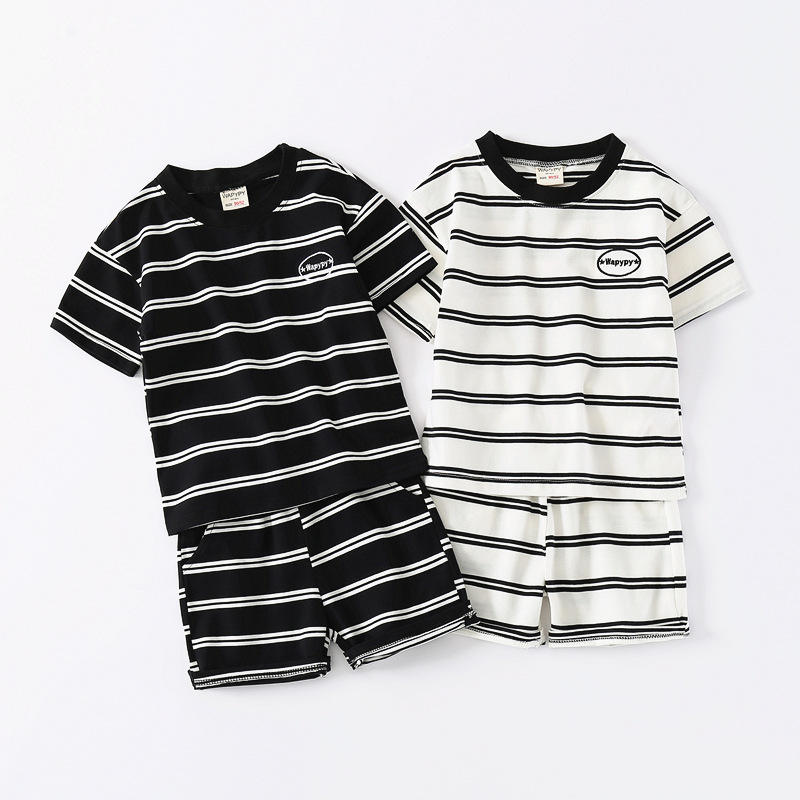 ชุดเสื้อยืดและกางเกงขาสั้นลายทาง 2 ชิ้น ชุดลำลองสำหรับเด็กผู้ชาย คอลเลคชั่นซัมเมอร์บูติก ปี 2022