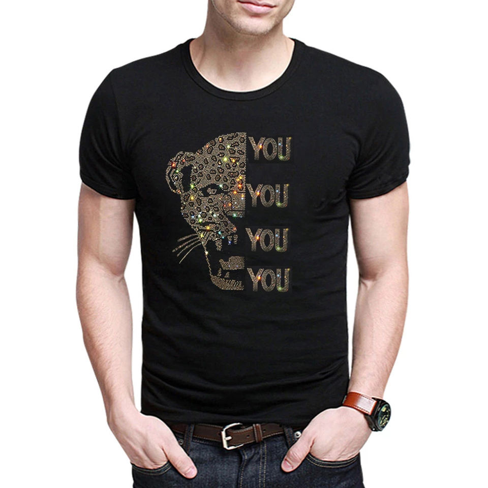 เสื้อยืดลายเสือ2022พลอยเทียมสีสดใสสำหรับผู้ชายเสื้อผ้าแฟชั่นเสื้อผ้าแนวสตรีทเสื้อยืดผ้าฝ้ายพลอยเทียม